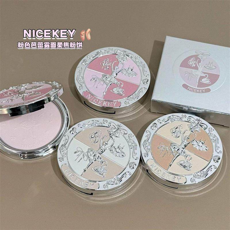 NICEKEY粉色芭蕾雾面柔焦粉饼 哑光散粉定妆伪素颜百搭带镜子粉饼