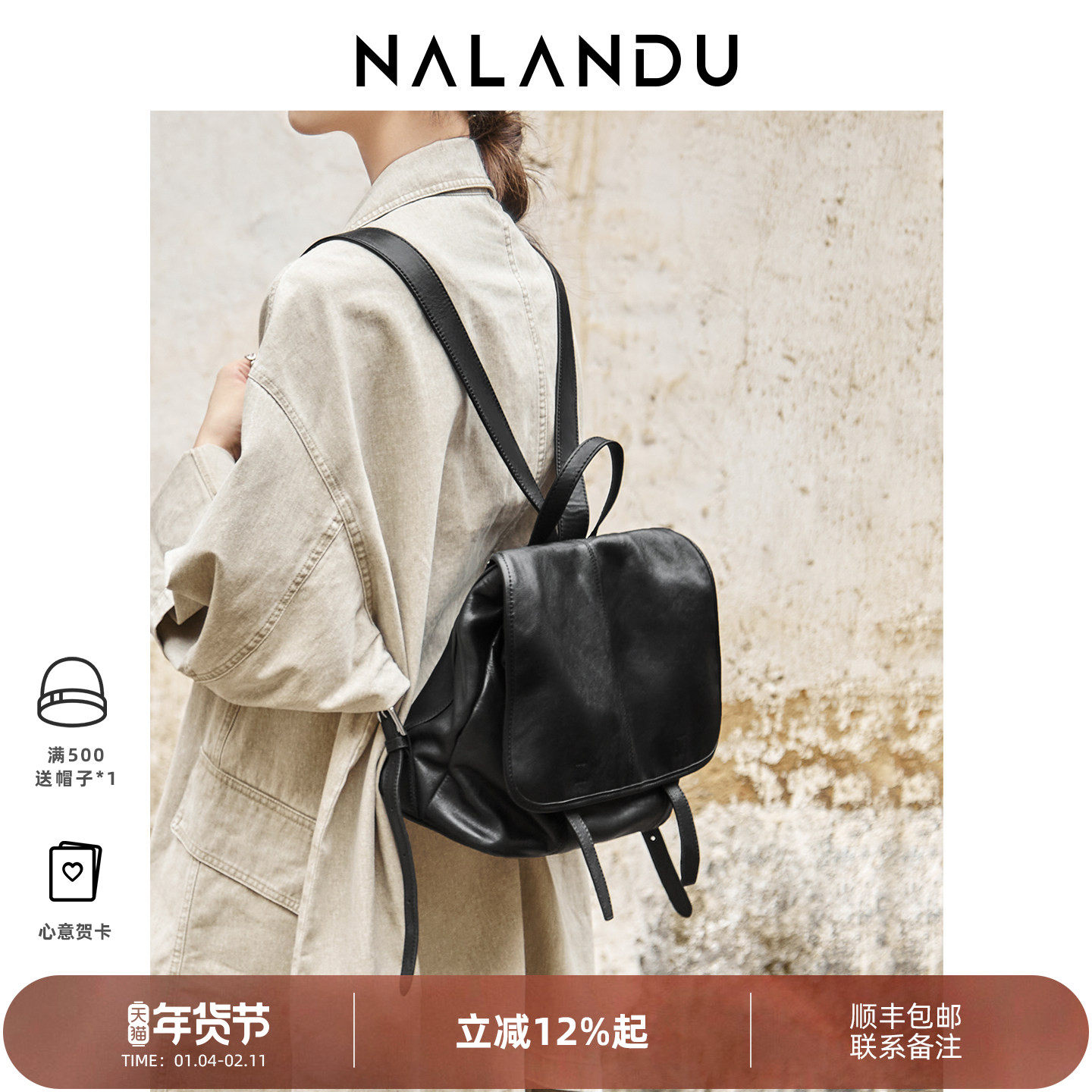 纳兰杜植鞣皮质双肩包女士2025新款冬书包复古通勤背包真皮邮差包