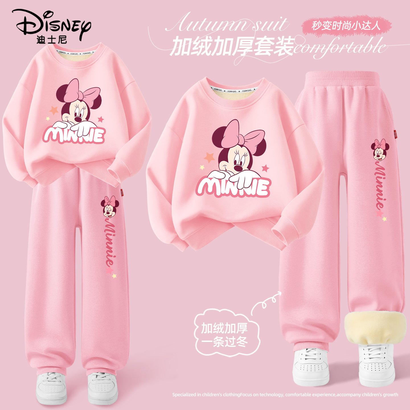 迪士尼女童秋冬套装2025新款洋气粉色女孩衣服加绒儿童冬装运动服