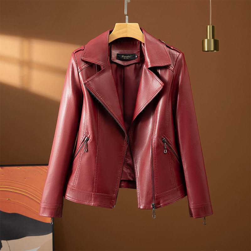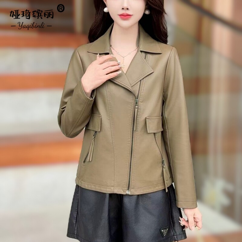 - 秋款皮衣女短款