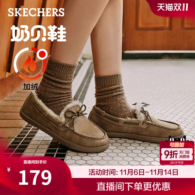 斯凯奇奶贝鞋|冬季女鞋软底豆豆鞋加绒保暖毛毛鞋乐福鞋平底单鞋