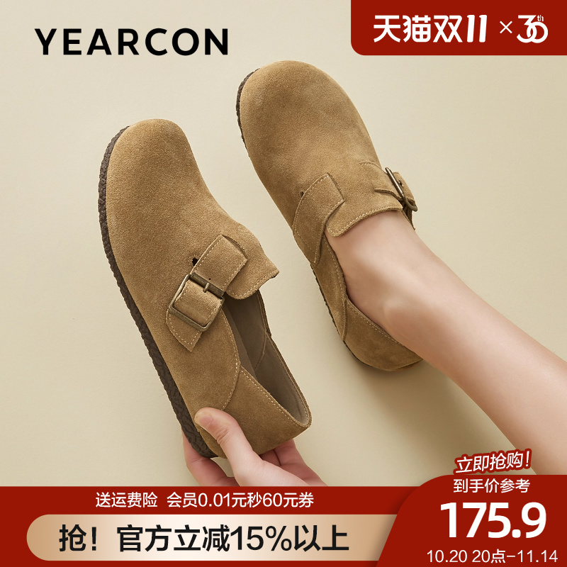 意尔康平底勃肯鞋女全包真皮博肯单鞋软底一脚蹬2025新款秋豆豆鞋