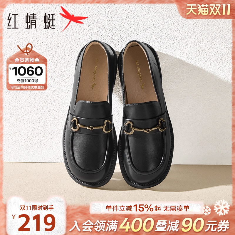 红蜻蜓乐福鞋女秋季新款一脚蹬女鞋软底舒适黑色单鞋女士平底皮鞋
