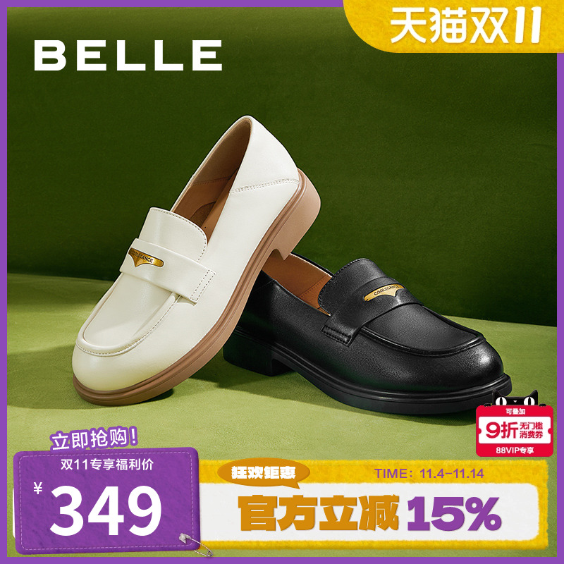 百丽羊皮英伦风乐福小皮鞋女新款软平底豆豆深口单鞋子E3C1DCA5预