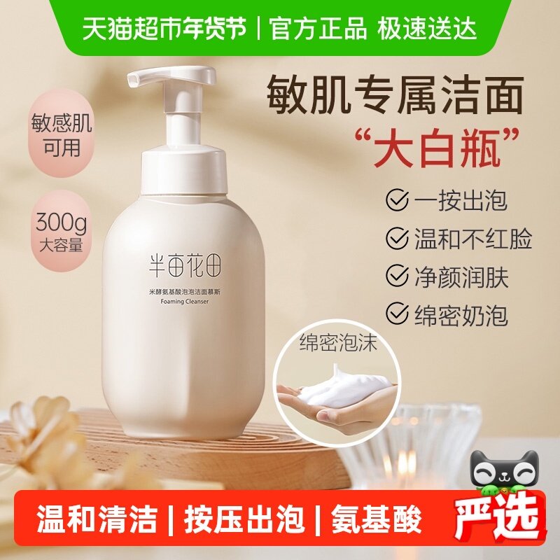 半亩花田洗面奶氨基酸慕斯控油补水泡沫深层清洁洁面乳敏感肌男女