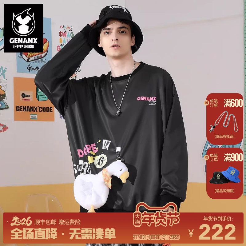GENANX闪电潮牌秋季卫衣新款小白鸭公仔ins风宽松情侣套头卫衣男