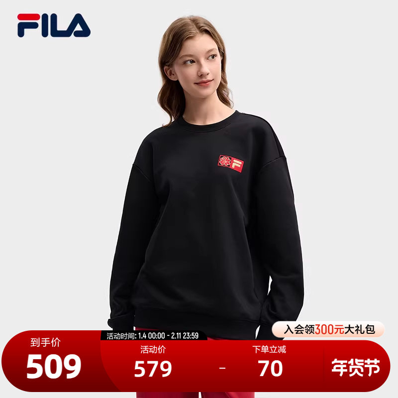 FILA 斐乐官方情侣套头卫衣2026春季新款休闲海棠花针织长袖上衣