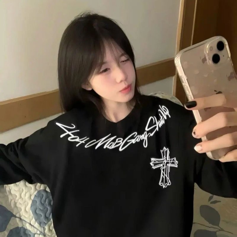 美式高街情侣套头卫衣男女重磅潮牌圆领长袖T恤宽松慵懒风上衣ins