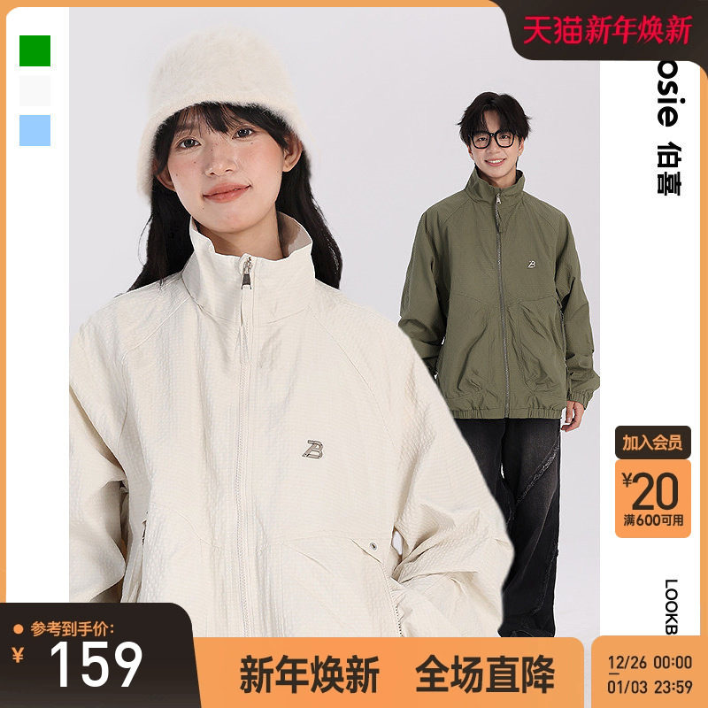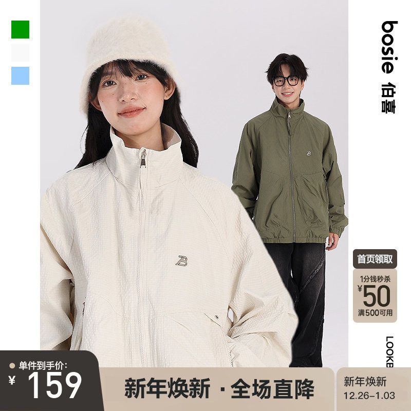 bosie伯喜2025年秋季新款户外运动夹克男情侣韩版宽松外套百搭潮