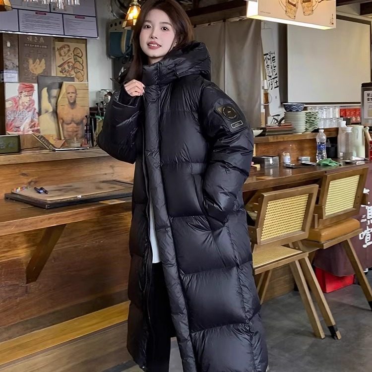 黑金长款加厚鹅绒服男女羽绒服2025冬季韩版宽松情侣加厚保暖外套