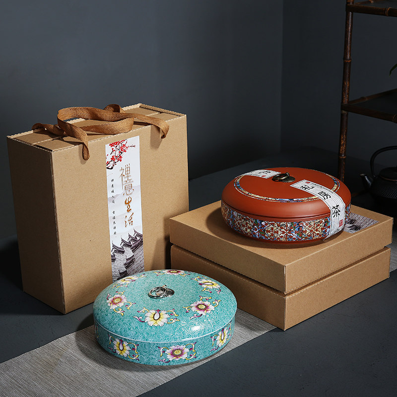 礼盒装紫砂普洱茶叶罐大号存茶盒七子饼罐礼品陶瓷茶罐白茶饼茶盒