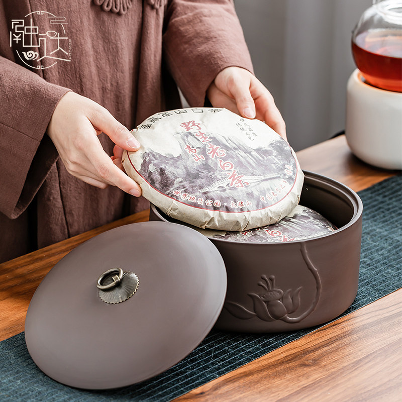 紫陶茶叶罐密封罐陶瓷紫砂大中小号醒茶罐普洱储存罐防潮简约家用