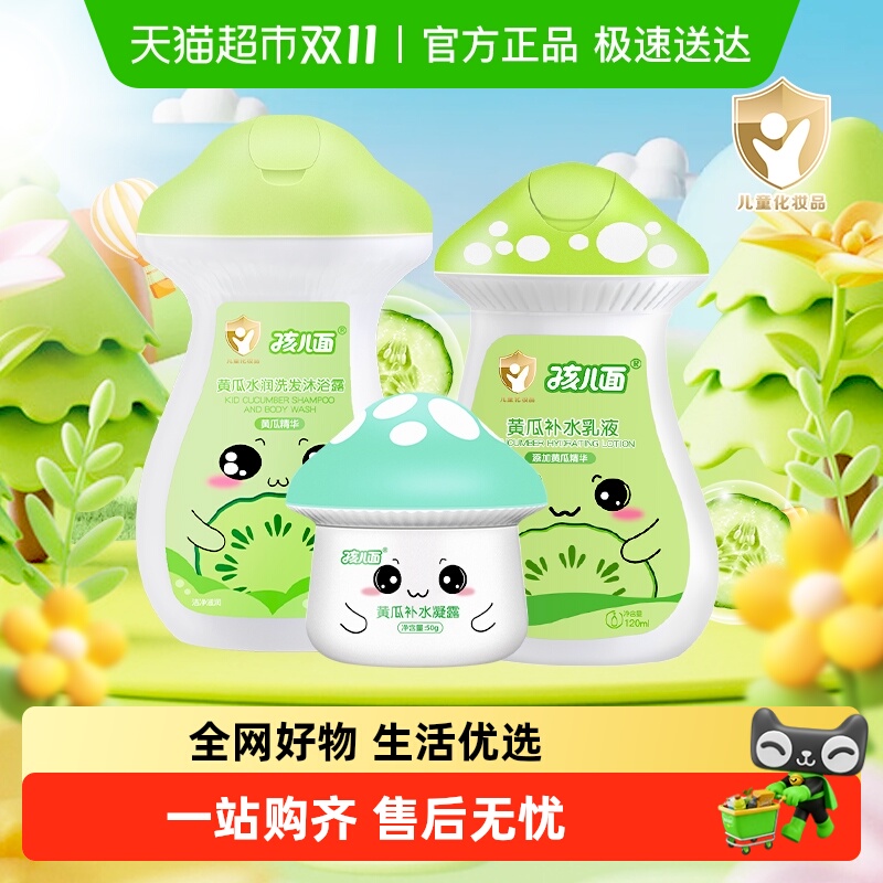 孩儿面黄瓜补水保湿清洁套装学生宝宝清爽滋润护肤乳液儿童洁面乳