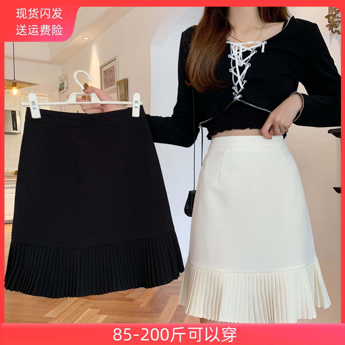 百褶裙大码职业中裙2025年春夏高腰黑色胖mm半身裙显瘦a字鱼尾裙