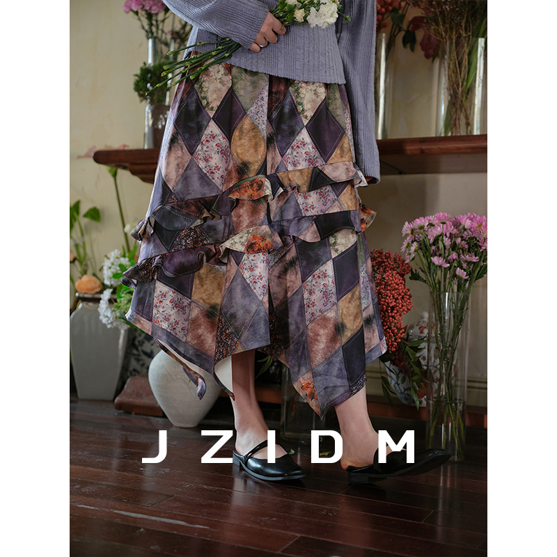 玖籽大码女装 复古紫色调设计感垂感夏季胖mm半身裙a字不规则半裙