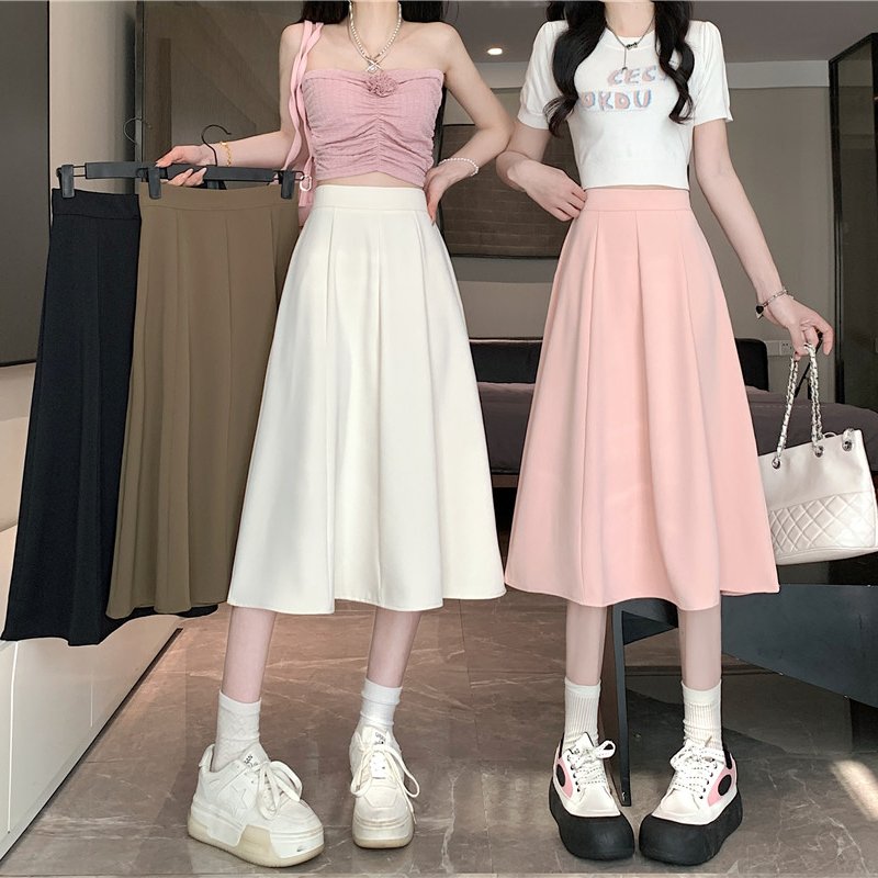 实拍~大码胖MM半身裙春夏韩版ins高腰显瘦中长款垂感百褶大摆伞裙