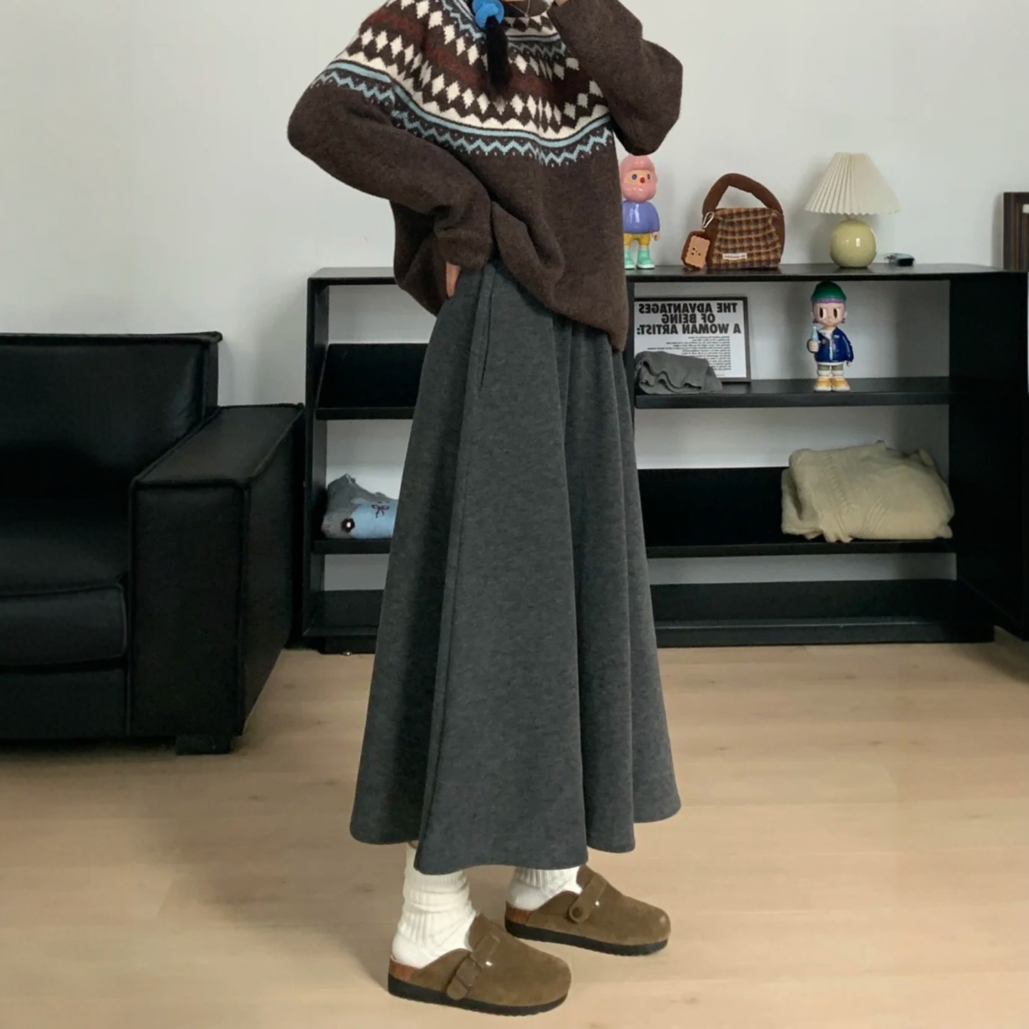 大码胖mm半身裙女2024新款秋冬时尚百搭毛呢裙高个子显瘦a字裙子