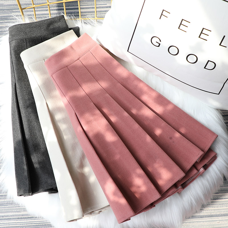 大码胖mm半身裙女中长款百褶裙小个子高腰a字裙胖妹妹秋冬长裙子