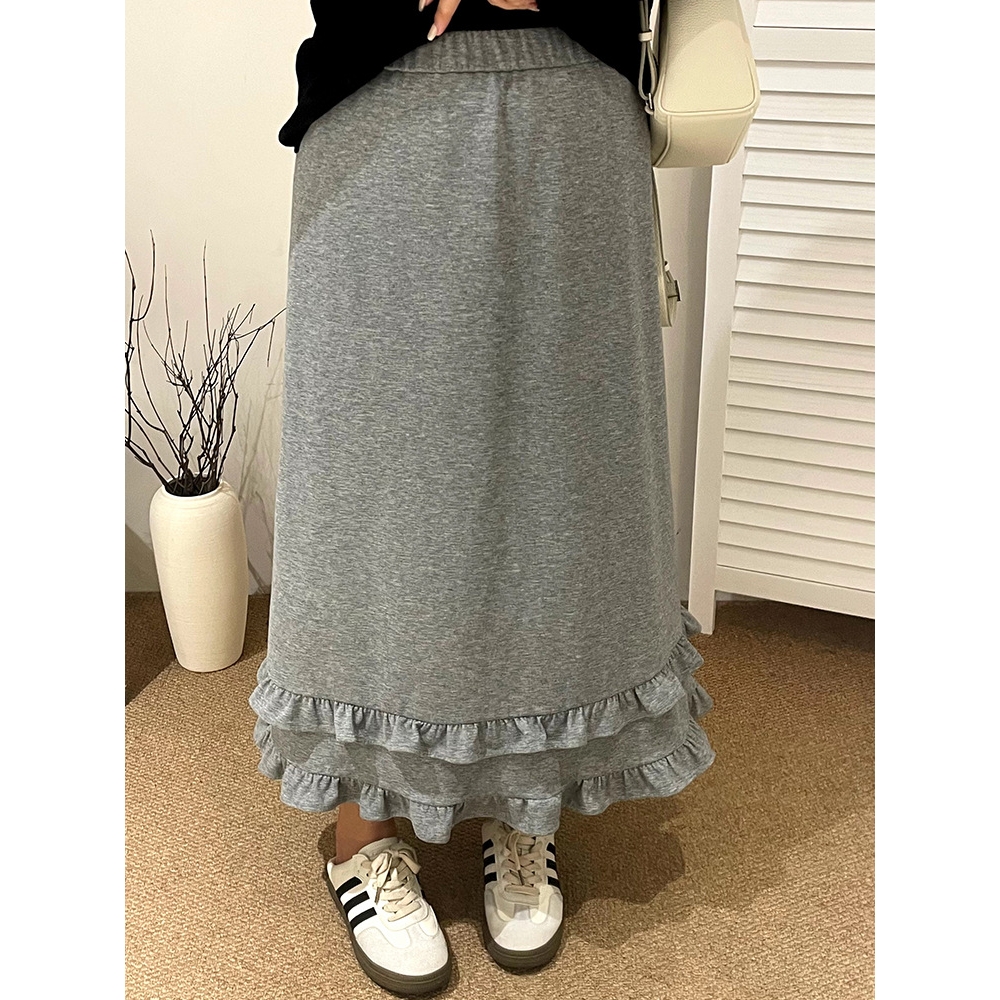 大码女装气质荷叶边裙子女高腰百搭针织裙2025秋胖mm半身裙NQ1260