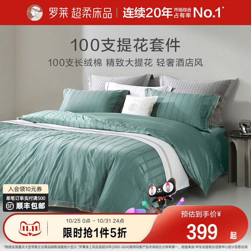 罗莱家纺床上用品全棉纯棉100支提花被套新疆长绒棉家居四件套秋