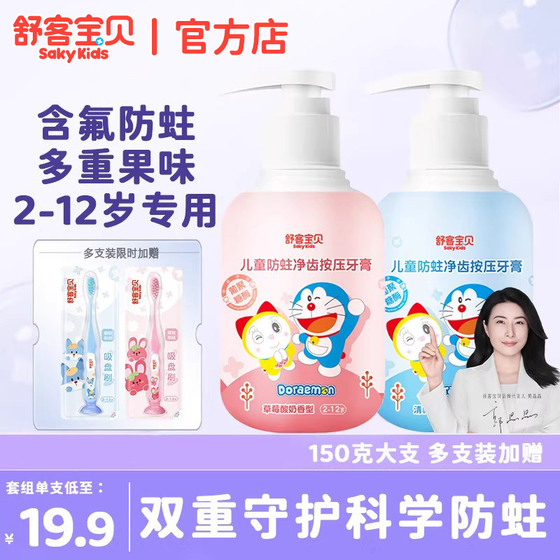 舒客宝贝官方店按压式儿童牙膏含氟防蛀2-3一6一12岁宝贝官方正品