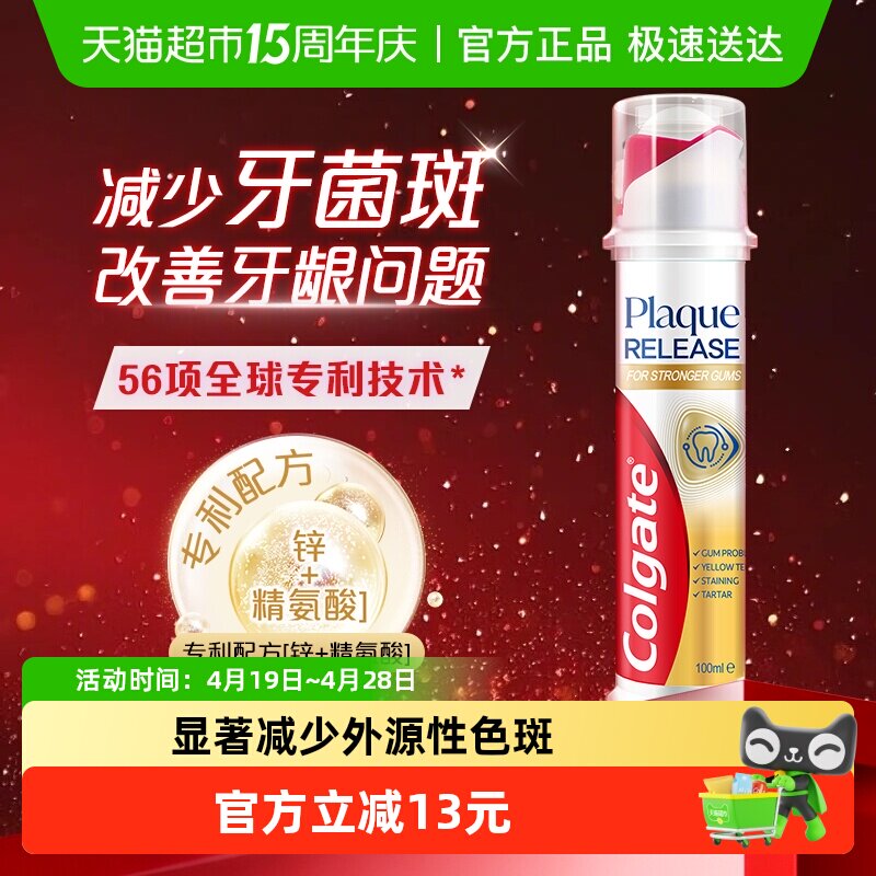 高露洁直立式牙膏按压式真空防蛀健齿含氟官方旗舰店正品130g*2