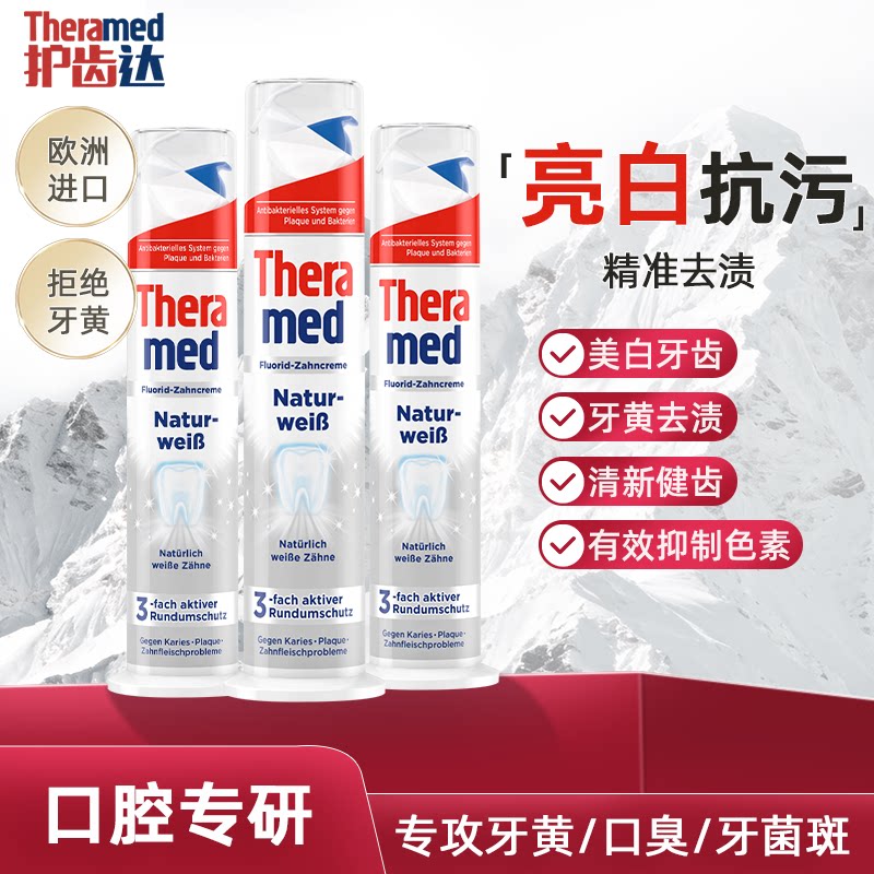 德国THERAMED护齿达美白汉高牙膏去黄去口臭含氟直立式按压牙膏