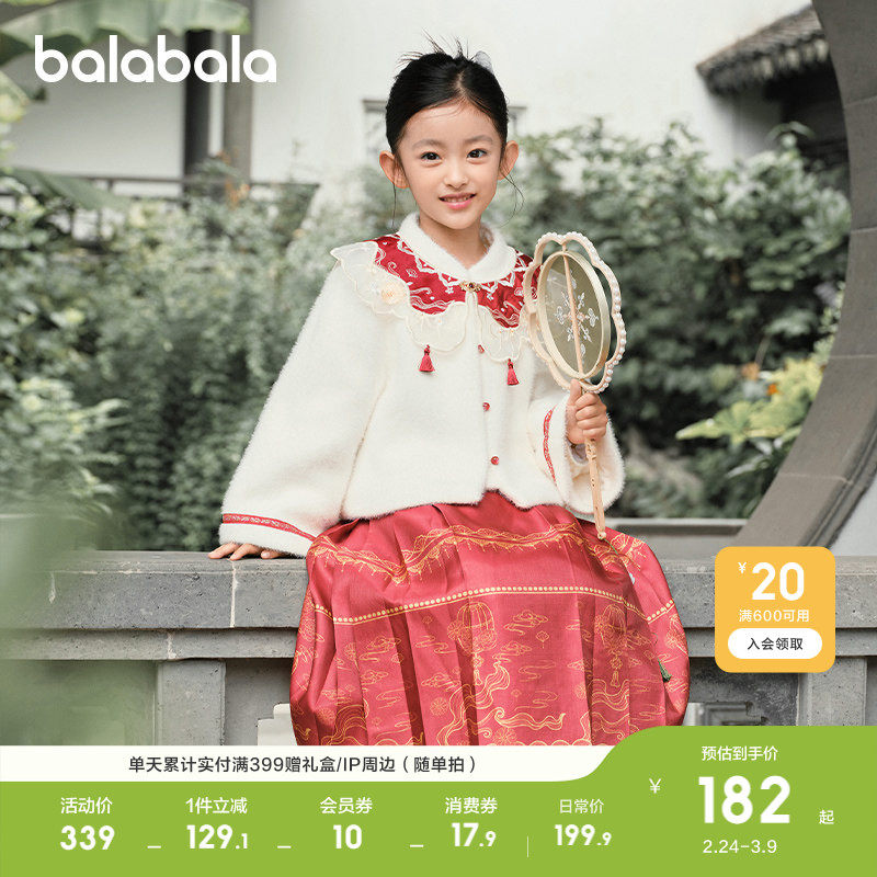 巴拉巴拉女童马面裙儿童汉服唐装2025国风套装两件套红色拜年服潮