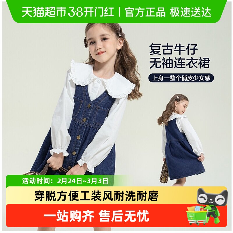 左西女童连衣裙春装套装2026新款儿童牛仔裙女孩超好看背带裙子潮