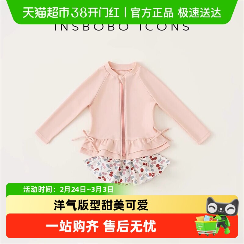 INSbobo儿童泳衣女孩分体泳衣套装宝宝泳衣长袖泳装泳衣裙夏装潮