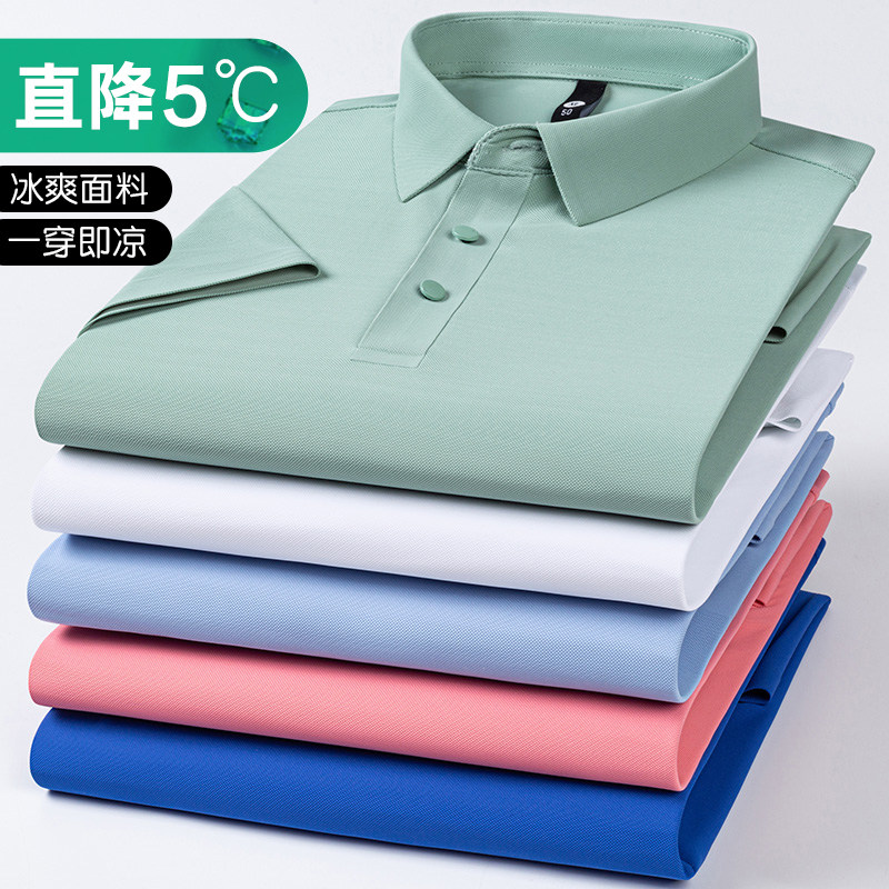 啄木鸟冰丝POLO衫夏季凉感中青年短袖免烫抗皱无痕裸感弹力休闲装