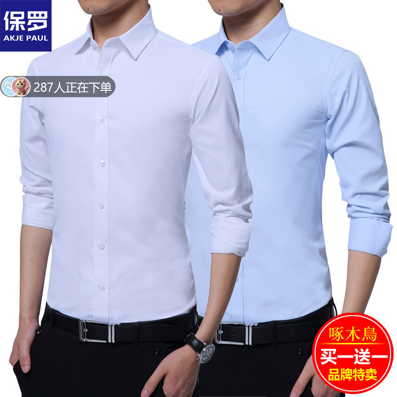奥克杰保罗长袖衬衫男商务正装修身衬衣寸衫中青年短袖理发师伴郎