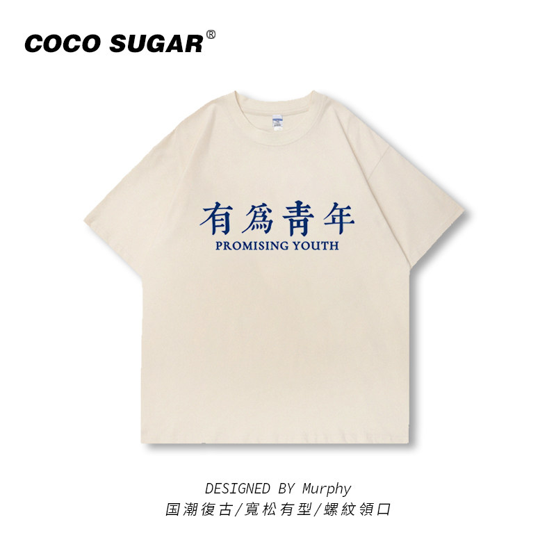 上进青年短袖中国青年t恤男士国潮复古80年代怀旧服装夏季上衣服