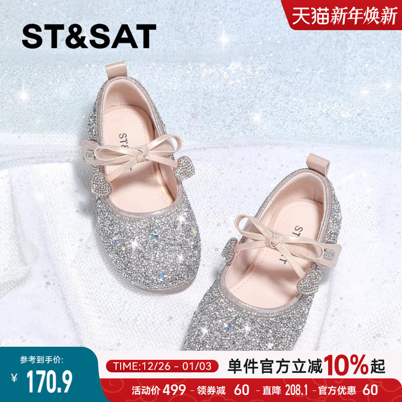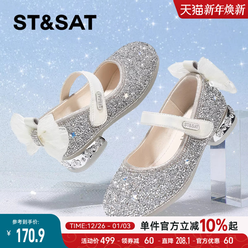 星期六童鞋儿童公主鞋2025秋季新款女童软底水晶鞋女孩漂亮高跟鞋