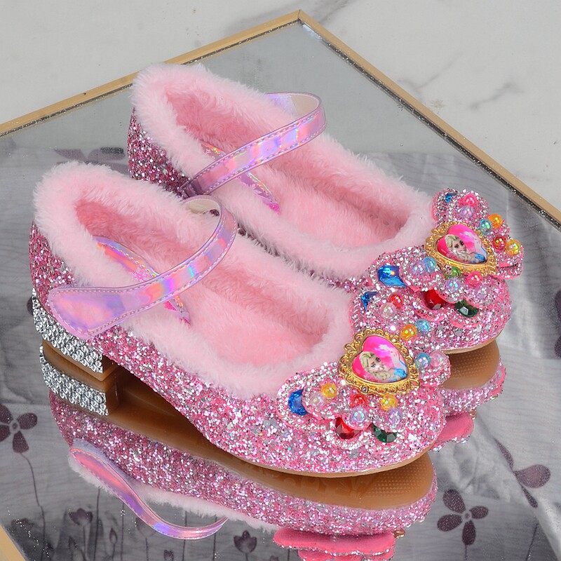 秋冬新款女童棉鞋韩版公主鞋冰雪奇缘爱莎鞋儿童高跟鞋女孩水晶鞋