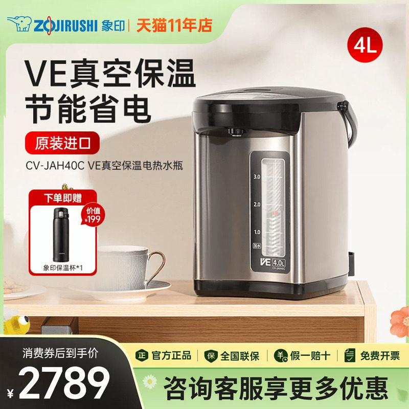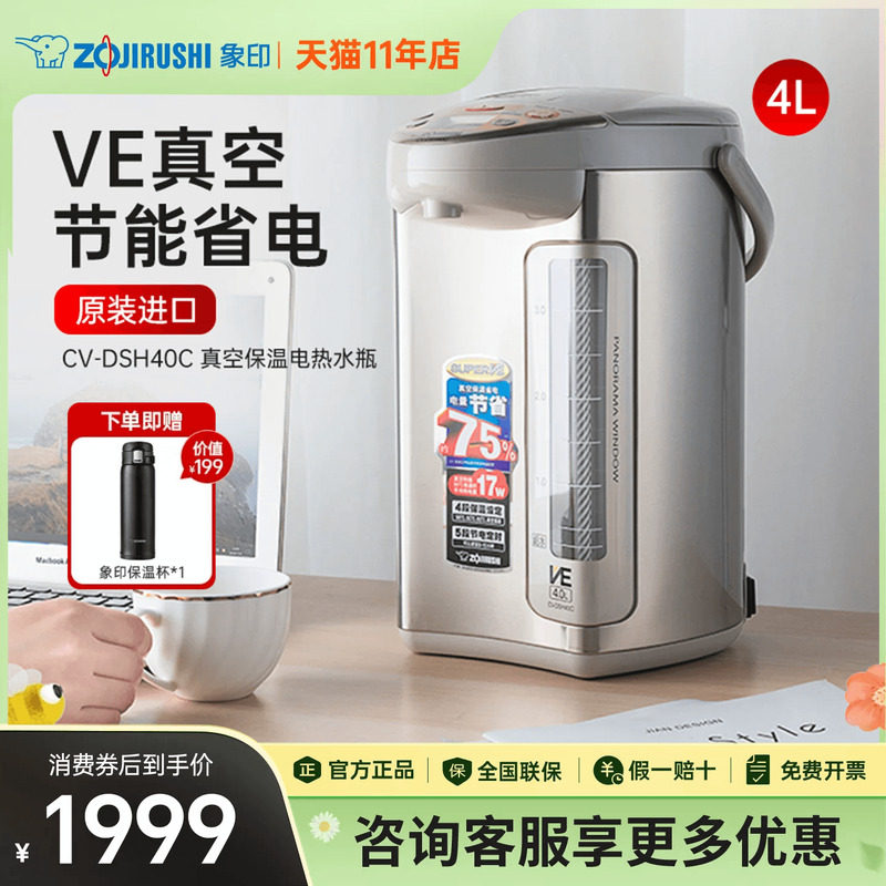 象印电热水瓶原装进口EV真空保温瓶4-5L沸腾除氯烧水壶CV-JAH40C