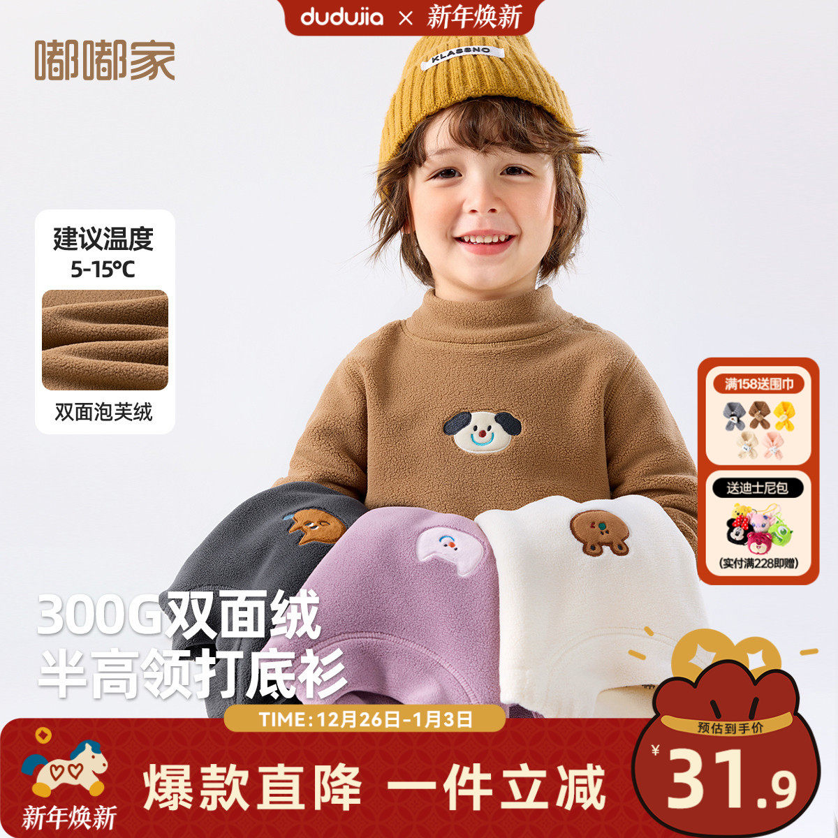 [双面泡芙绒]儿童T恤冬装男童半高领打底衫女童长袖宝宝加绒上衣