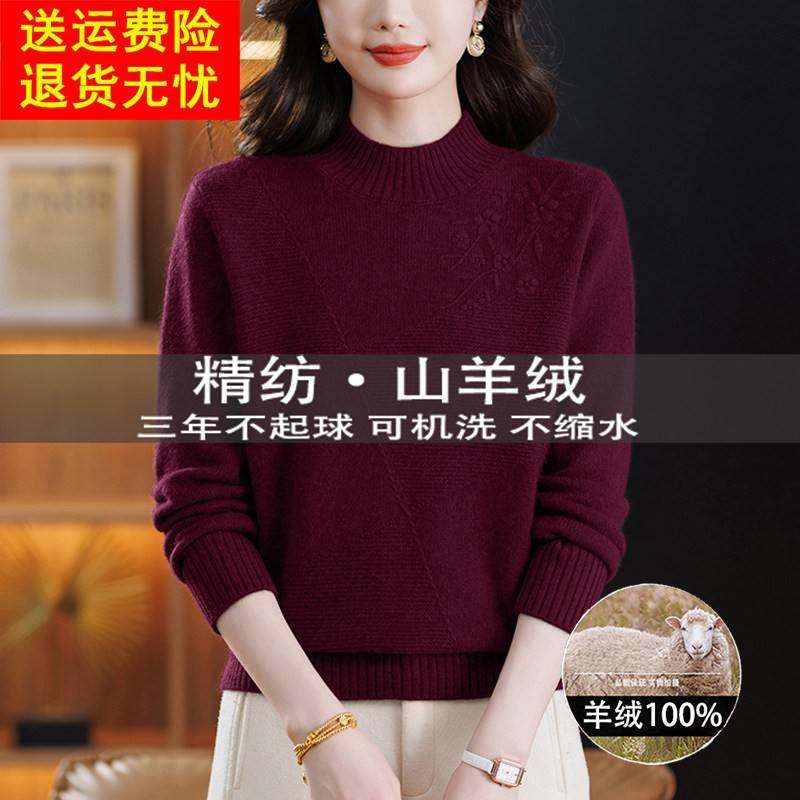 - 半高领加厚羊绒衫女