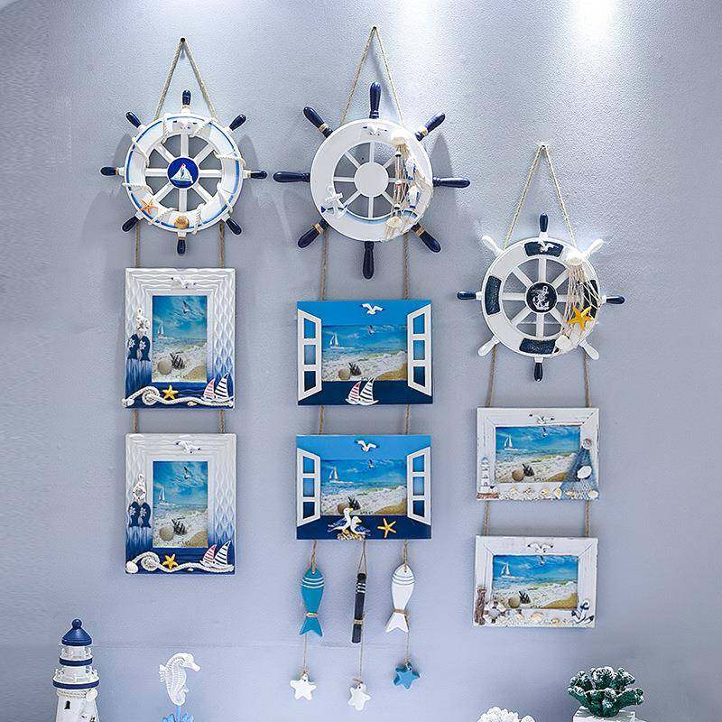 地中海风格创意舵手三联壁相框三连串壁挂像框照片墙家居装饰挂件