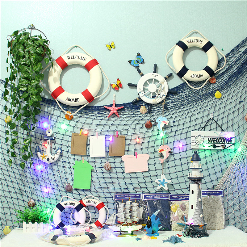 地中海风格粗线 线渔网装饰网挂件幼儿园背景照片墙鱼网墙面壁饰