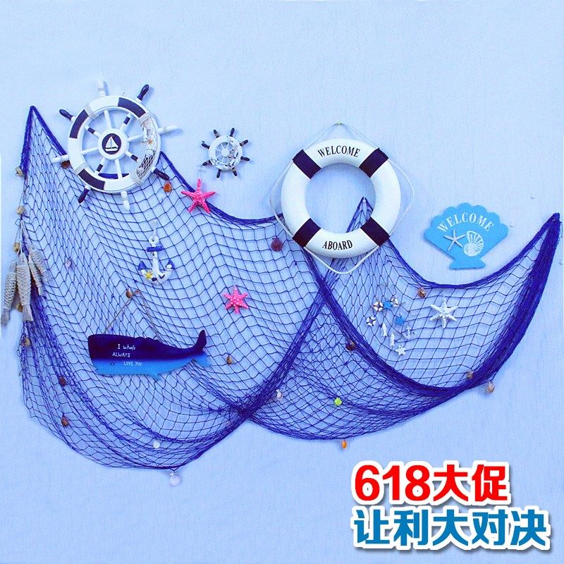 地中海风格粗线渔网装饰网挂件幼儿园背景照片墙鱼网墙面壁饰挂饰