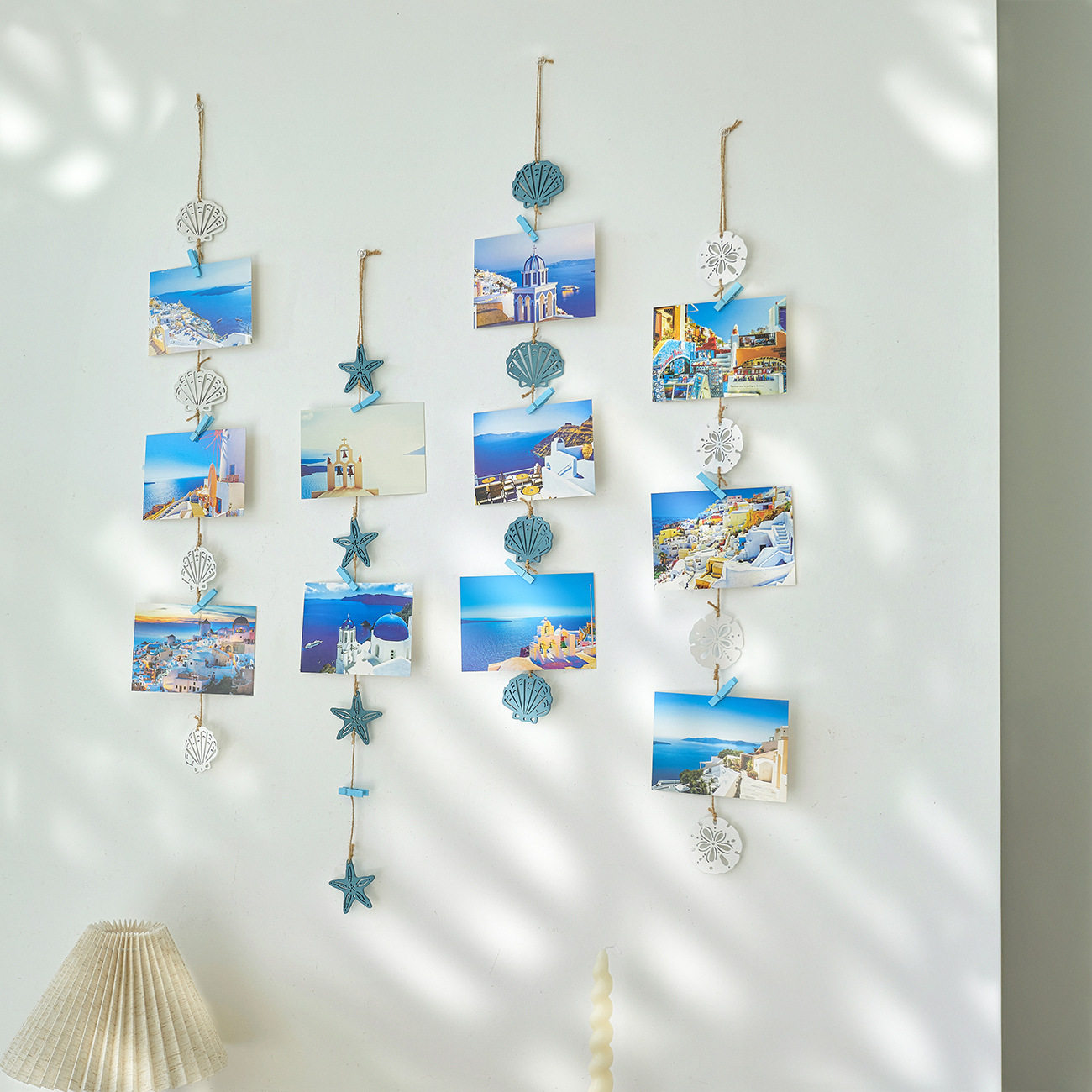 地中海风格照片墙装饰相框墙相片框挂墙心照片墙装饰麻绳夹子贝壳