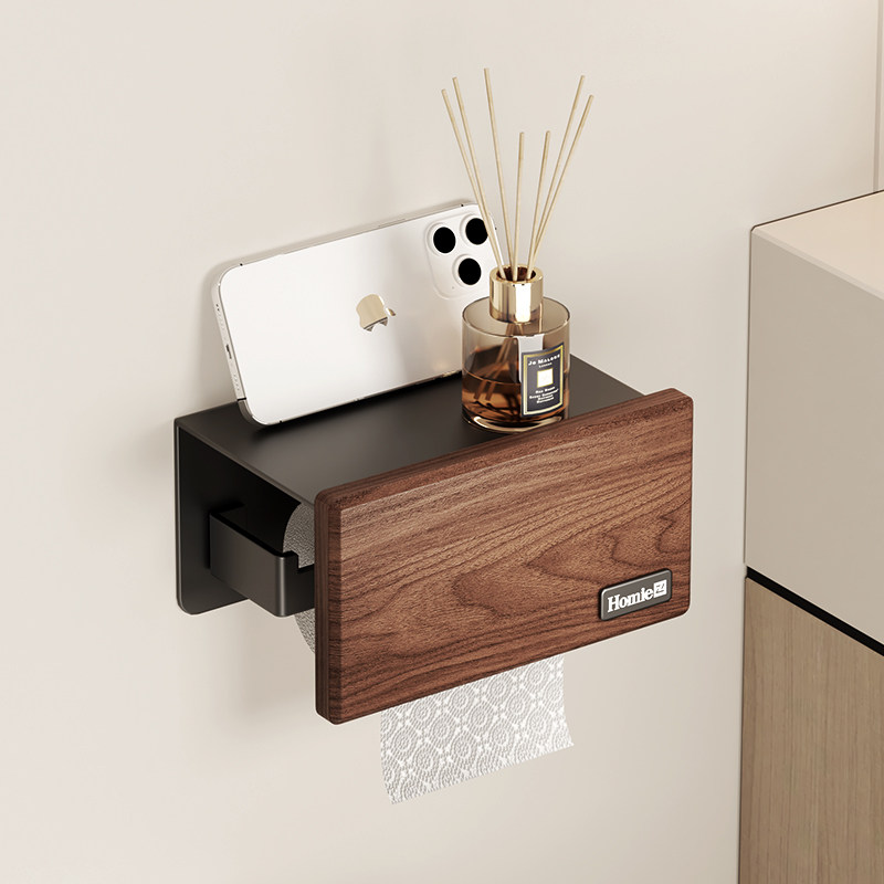 胡桃木卫生间轻奢高档厕纸盒免打孔卫生纸收纳置物架洗手间抽纸架