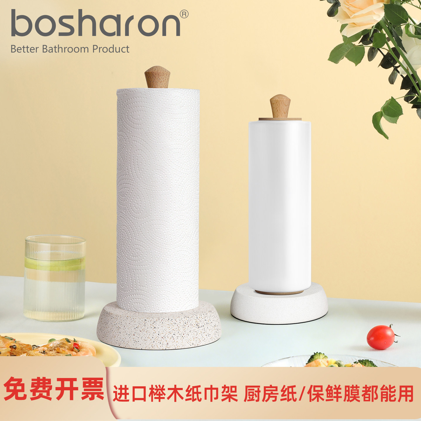 高级感相思木厨房纸挂架桌面卷纸架免打孔保鲜膜收纳杆立式卷纸杆