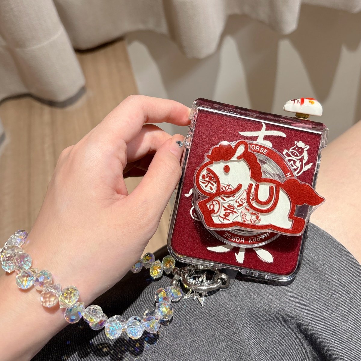 马年喜乐招财猫摇摇乐磁吸支架适用三星zflip7/6/5手机壳全包小米mixflip2折叠荣耀vflip保护套华为novaflips