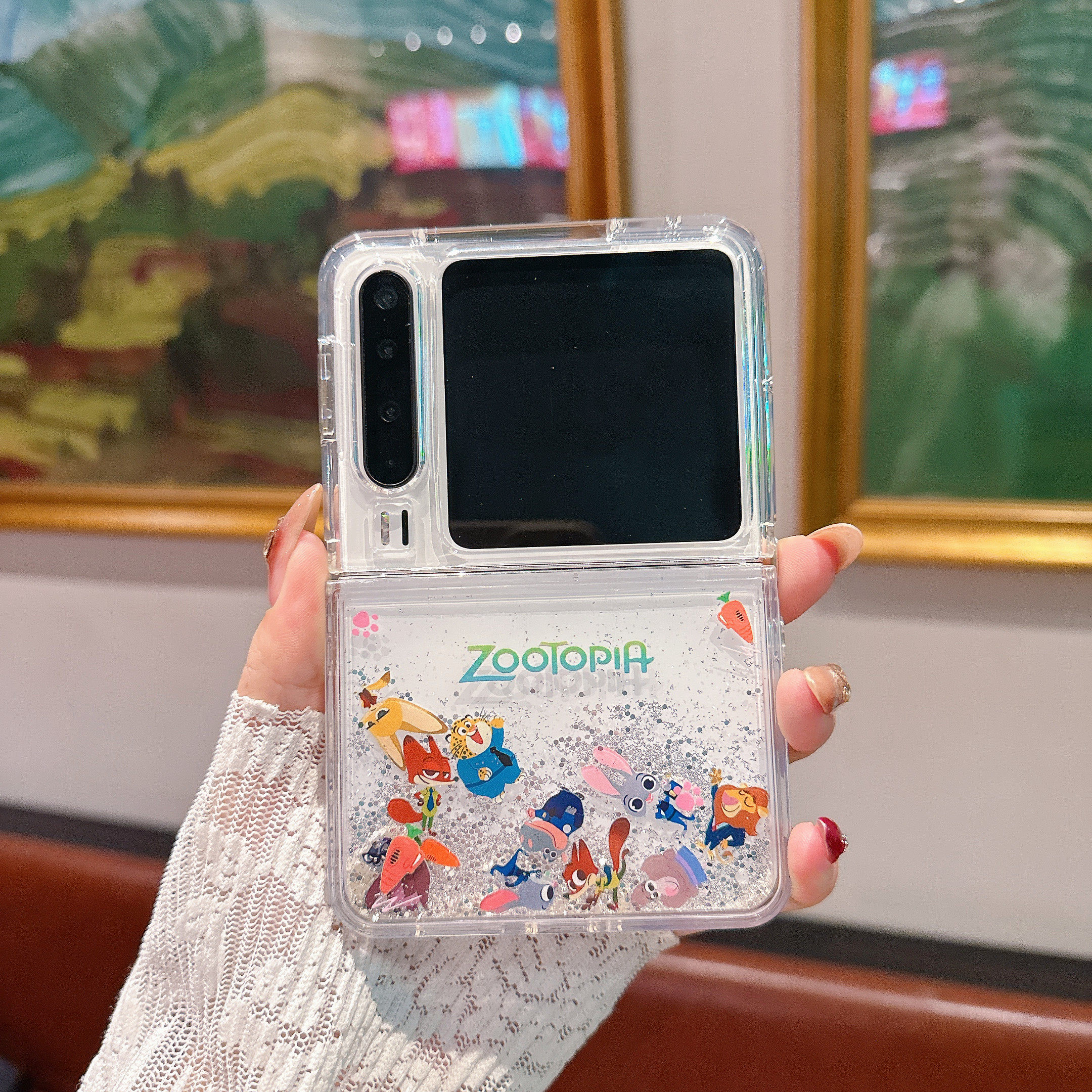 可爱闪粉流沙摇摇乐动物城兔子适用华为Pura X手机壳折叠屏pocket2保护套三星zflip7/6/5软胶荣耀magicvflip2