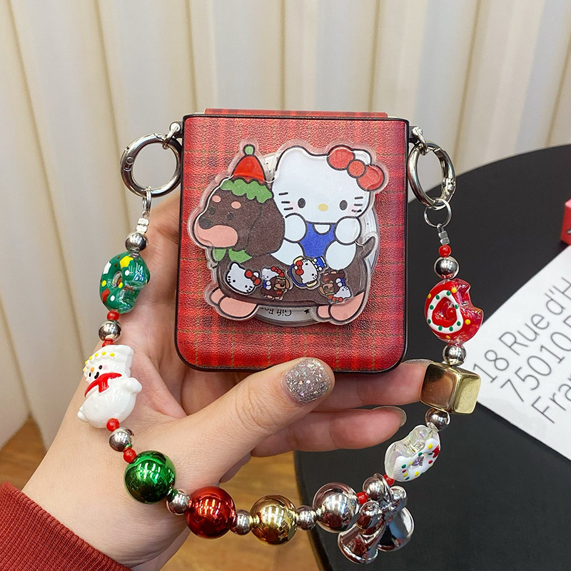 摇摇乐kt磁吸支架适用三星zflip6/5折叠屏手机壳新款pocket2小米mixflip保护套n2/n3flip格纹p50pocket圣诞风