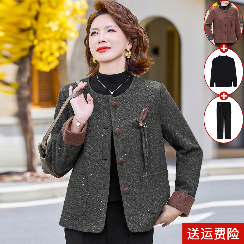 中年妈妈春秋外套洋气2025新款中老年女阔太太秋装小香风毛呢上衣