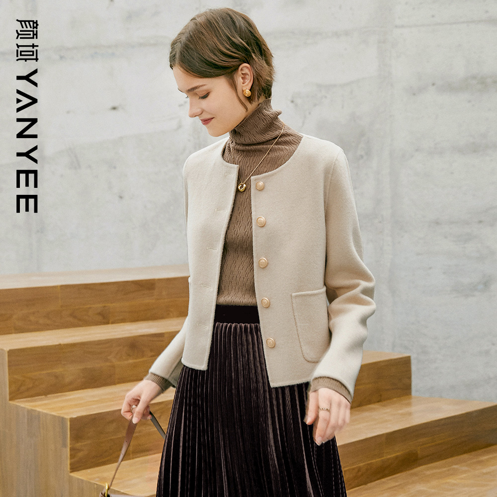颜域简约毛呢外套女冬装2025新款气质显瘦时尚短款羊毛双面呢大衣