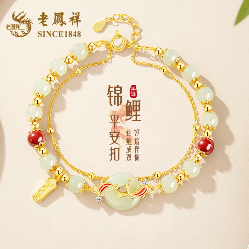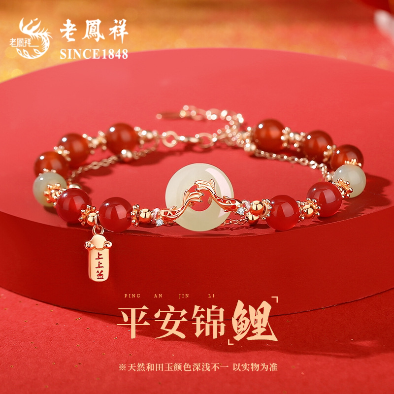 老凤祥锦鲤平安扣手链女2026新款和田玉s925转运珠生日礼物送女友